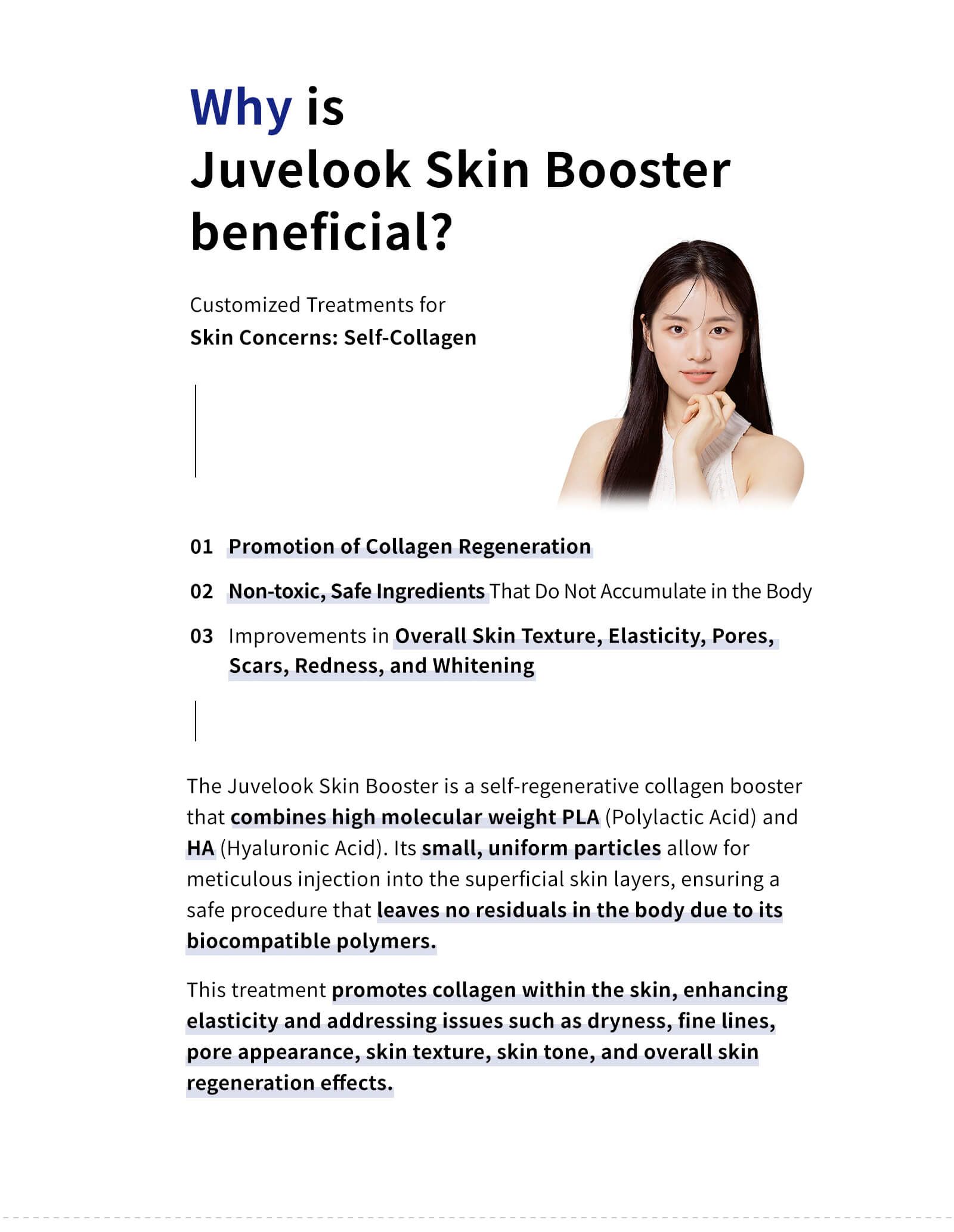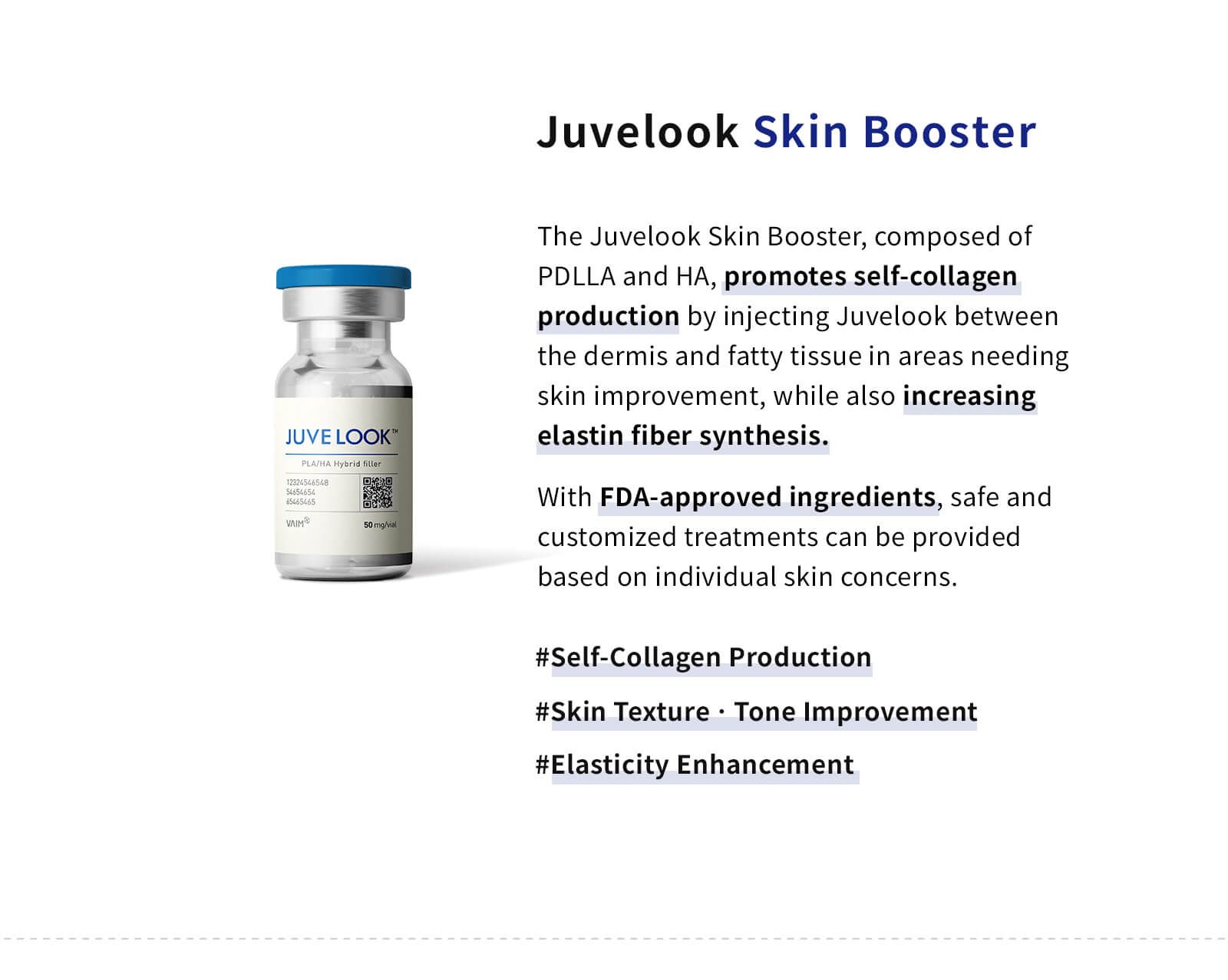 - Juvelook is a collagen-stimulating skin booster combining PDLLA (poly D, L-lactic acid) with hyaluronic acid (HA).